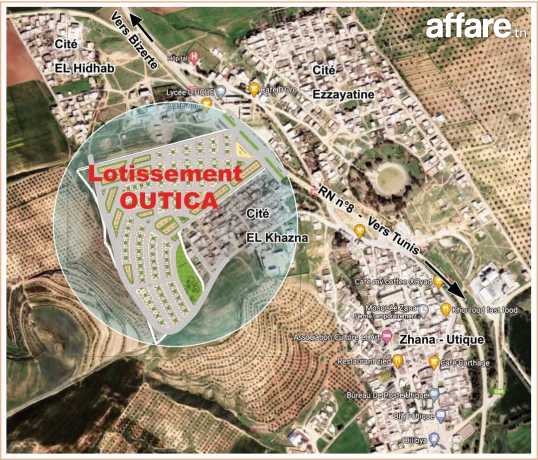 قطعة ارض مهيئة بالكهرباء و الغاز و الماء و الاتصالات طريق معبد تمسح 102 م تبعد عن الطريق الوطني تونس بنزرت عشرات الامتار منجزة من قبل باعث عقاري في تقسيم يحتوي على المقر الجديد لبلدية اوتيك مجمع المياه للصوناد بالقرب من معهد الثمن مناسب جدا على من يرغب في الشراء الاتصال بأحد الارقام التالية 50945258 او 99146517.