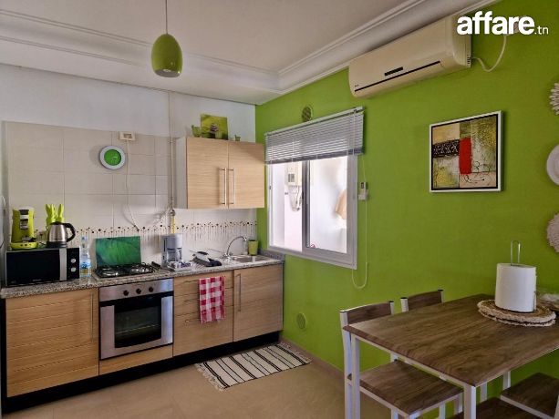À vendre un magnifique appartement S+2, tout équipé, situé au 4ème étage avec ascenseur dans une résidence calme et sécurisée, à seulement 150 mètres de la plage 🏖️🌊 !