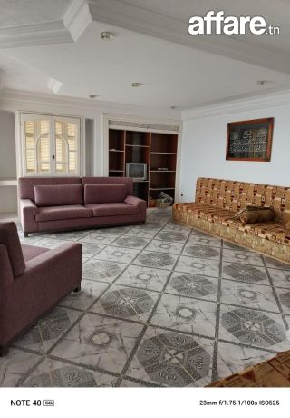 Nous vous proposons à la vente un bel appartement S+3 de bon standing, d’une superficie de 129 m², situé au 3e étage dans un immeuble familial calme et bien entretenu, en deuxième position de la plage & à proximité immédiate de toutes les commodités & des transports, Tantana Chott Mariem.