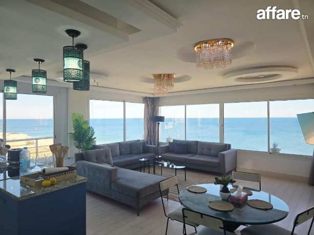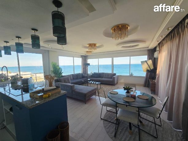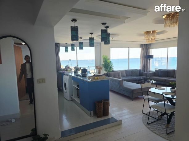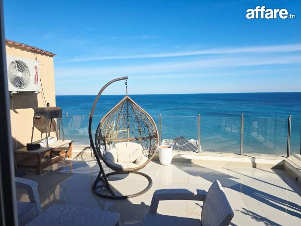 🌊Laissez-vous charmer par ce superbe penthouse S+2 de 112 m² Pieds Dans L'eau, situé au dernier étage avec ascenseur dans une résidence de prestige à proximité immédiate de tous les commodités, où la mer s’invite jusque chez vous. Ici, chaque détail respire le raffinement et la sérénité, Tantana Chott Mariem.