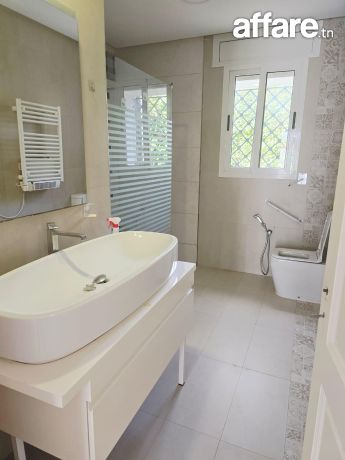 À Vendre, une villa indépendante, plain pied sur un terrain de 450 m², située à proximité immédiate de tous les commodités & à 3 minutes de la mer dans quartier résidentiel Chott Mariem, comprenant un grand jardin paysagée ainsi qu’un garage pour 3 véhicules.