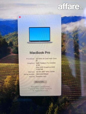 * Processeur : Intel Core i9 2.4 GHz – 8 cœurs