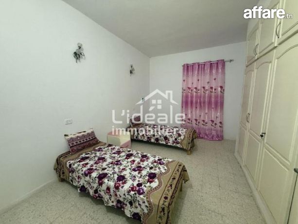 À louer annuellement, une maison située au rez-de-chaussée à Hammamet Nord, dans la zone du rond-point Sultan.