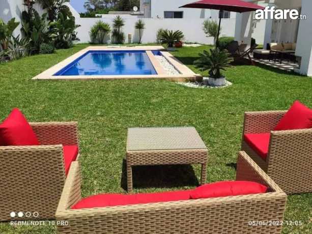 Une villa de maître à la station balnéaire #kélibia_la_blanche 🏊la mansourah à 2 mn à pieds de l'une des meilleures plages du monde implantée sur un terrain de 800 m² équipée d'une piscine à débordement comprenant des suites et des séjours avec des matériaux nobles et meuble raffiné