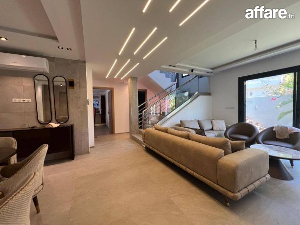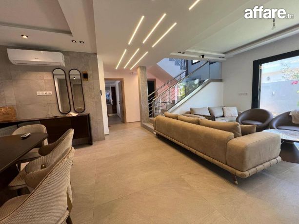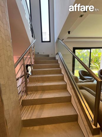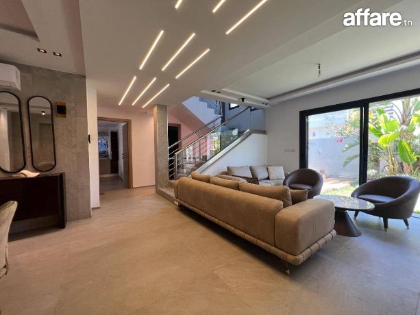 A Louer une Superbe villa avec piscine récemment construite, de très haut standing et richement meublée dans un quartier résidentiel à yakout Hamaoui - la soukra
