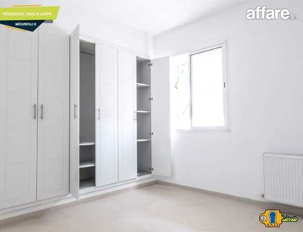 A louer appartement s2 haut standing 3eme étage dans une résidence calme et sécurisée à Elmourouj 6. Il est doté d'un salon bien éclairé,deux chambres spacieuses avec un grand dressing.une salle de bain et une cuisine bien équipées ,un chauffage centrale est installé plus une place parking sous sol. 27 431 204