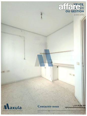 🔹MAXULA IMMOBILIERE vous propose à la LOCATION un BUREAU A+2 situé au 2ème étage sans ascenseurs d’un immeuble bien placé sur la ROUTE DU PORT DE RADES, faisant face à la ZONE INDUSTRIELLE, un emplacement stratégique pour toute activité professionnelle.