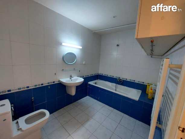 A vendre un appartement S+3 d'une Superficie de 129 m² au 4éme étage avec doubles ascenseurs dans une résidence bien sécurisée à cite wahat . Il se compose d’un salon avec balcon, une cuisine bien équipé avec plaque, et séchoir, deux chambres à coucher avec dressings plus une suite parentale avec douche et une salle de bain.