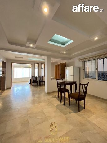 Au rez de chaussée on trouve un appartement S+3 composé d’un spacieux salon, séjour, salle à manger, une cuisine, 3 chambres à coucher, 2 salles d’eau et jardin.