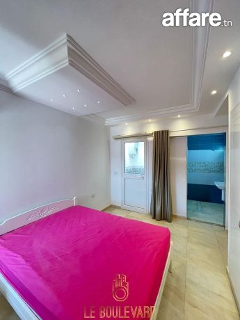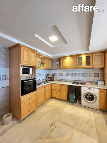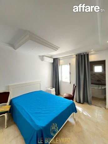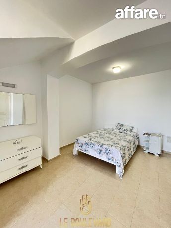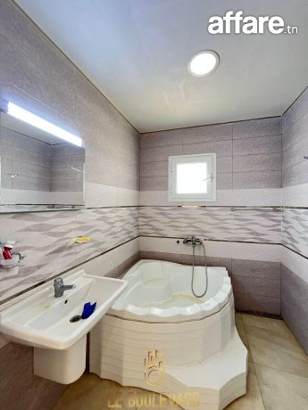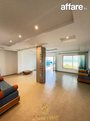A l’étage : un appartement S+3 haut standing se compose d’un salon spacieux avec vue panoramique sur la mer, une cuisine bien équipée (plaque, hotte, four...), 2 suites parentale avec placard et salles d’eau, une chambre d’enfant et salle d’eau