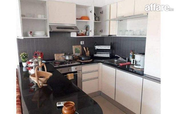 -une chambre à coucher, salon, cuisine américaine bien équipée(four, micro ondes,lave-linge) une salle de bain.