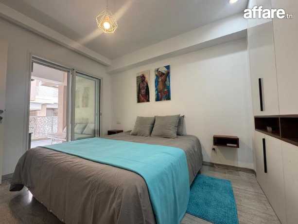 À louer chez TPS immobilière de la période allant du 25 mai au 15 septembre un appartement (S+2) situé au premier étage d'une résidence sécurisée avec ascenseur, offrant un cadre de vie agréable a 800m de la plage .