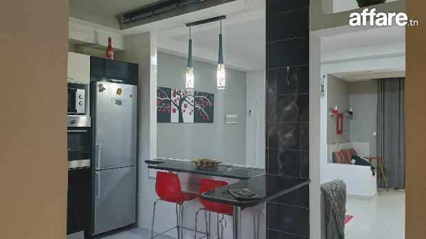 A louer appartement richement meublé standing situé à rades près de toutes les commodités composé d'un salon plus 3 chambres cuisine équipée sdb chauffage central tel 21042011