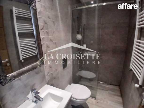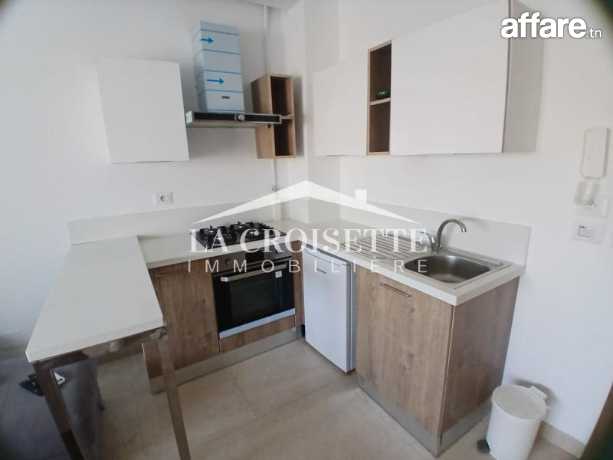 La Croisette immobilière Tunisie vous propose à la location un appartement S+1 occupant le deuxième étage d'une résidence gardée aux Jardins de Carthage.