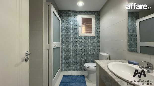 Un appartement S+1 meublé dans une résidence gardée avec piscine à Hammamet. Il comprend une kitchenette équipée et aménagée (plaque, hotte, four, machine à laver) ouverte sur un salon avec une salle à manger toute neuve. La chambre à coucher, également neuve, dispose d’un dressing. Une salle d’eau moderne avec douche à l’italienne complète le bien.