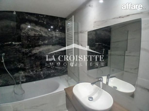 La Croisette Immobilière Tunisie vous propose à la location un appartement S+2 occupant le quatrième étage d’une résidence gardée aux Jardins de Carthage.