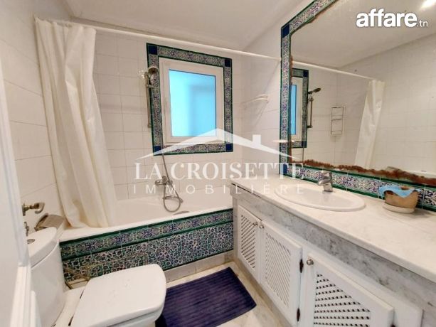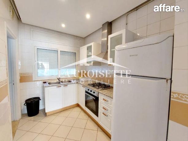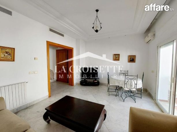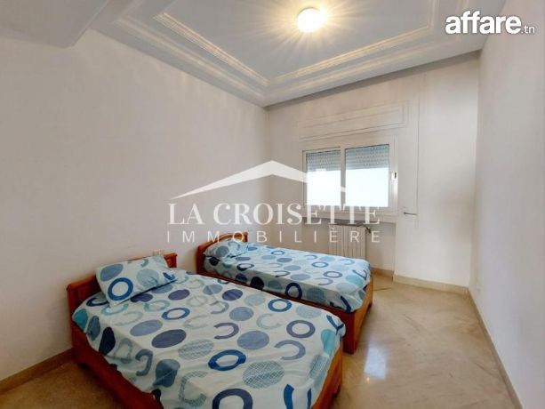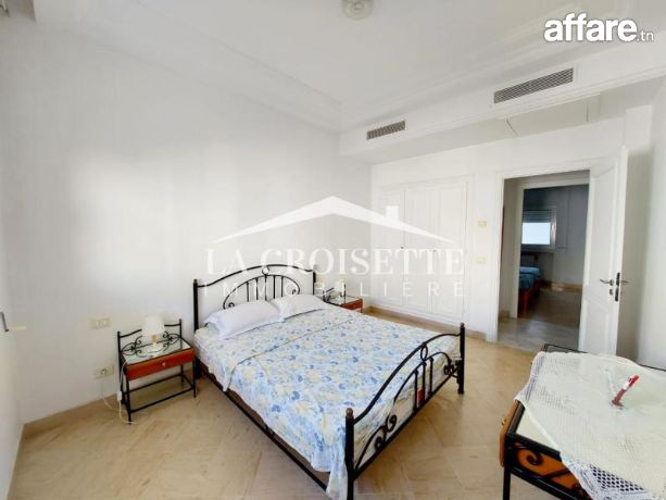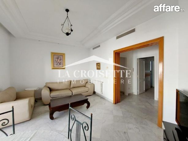 La croisette immobilière Tunisie vous propose à la location un appartement S+2 meublé occupant le premier étage d'une résidence gardée située dans un quartier résidentiel et proche de la plage à La Marsa.