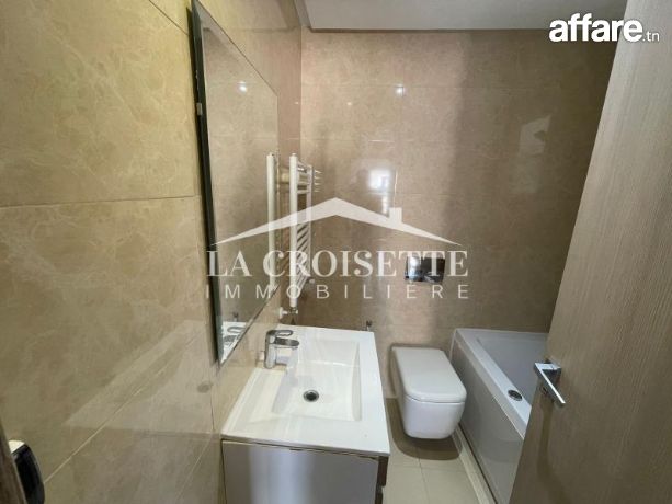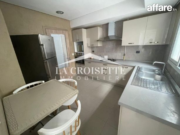 La Croisette Immobilière Tunisie vous propose à la location un appartement S+2 meublé occupant le troisième étage d'une résidence gardée à Ain Zaghouan Nord.