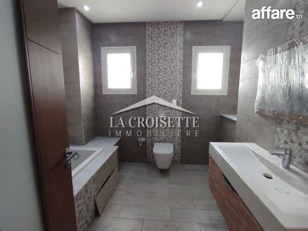 La Croisette Immobilière Tunisie vous propose à la location un appartement S+3 occupant le deuxième étage d'une résidence gardée située à Ain Zaghouan Nord.