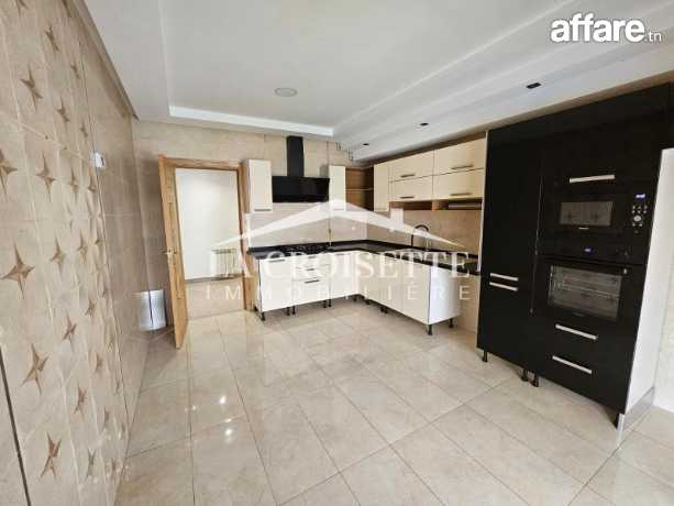 La Croisette Immobilière Tunisie vous propose à la location un appartement S+3 occupant le premier étage d'une petite résidence gardée située aux Jardin de Carthage.
