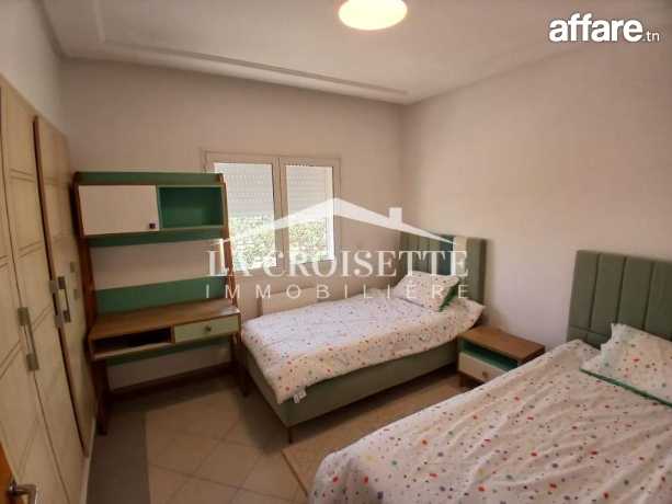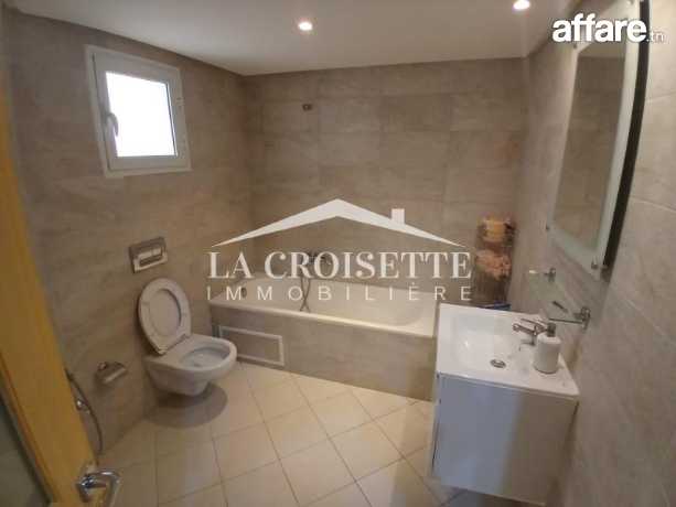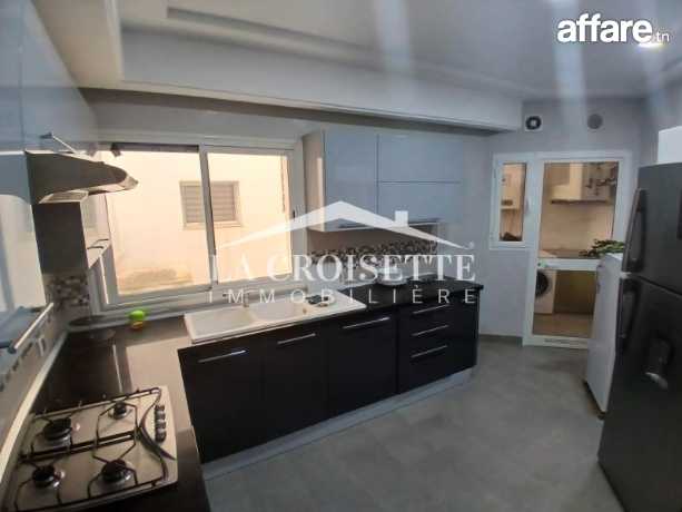 La Croisette Immobilière Tunisie Vous propose à location un appartement S+3 meublé occupant le cinquième étage d'une résidence gardée située aux Jardin de Carthage.