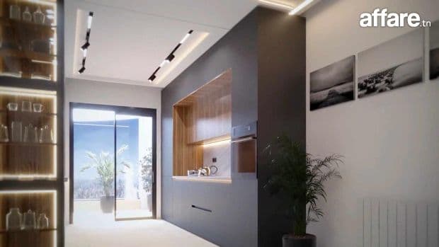 La Croisette Immobilière Tunisie vous propose à la vente un appartement S+0 occupant le deuxième étage d'une résidence gardée située à La Nouvelle Soukra.
