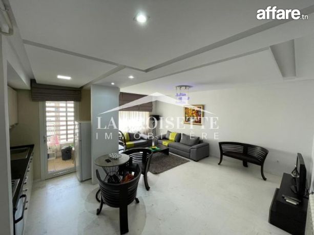 La Croisette Immobilière Tunisie vous propose à la location un appartement S+1 meublé occupant le sixième étage d’une résidence gardée aux Jardins de Carthage.