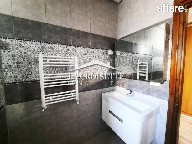 La Croisette Immobilière Tunisie vous propose à la location un appartement S+2 occupant le premier étage d’une résidence privée avec ascenseur à Ain Zaghouan Nord.