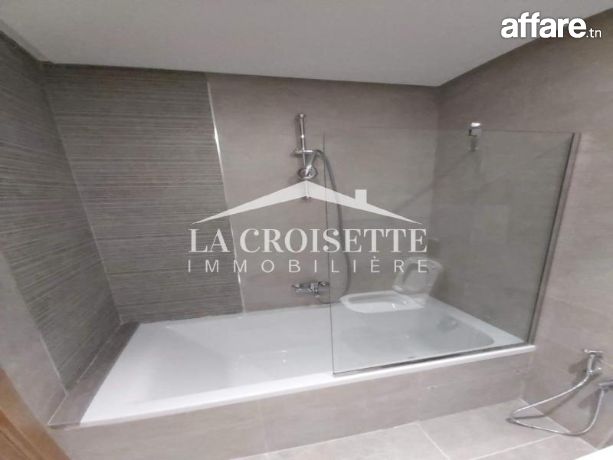 La Croisette Immobilière Tunisie vous propose à la location un appartement S+2 situé dans une résidence gardée à la Nouvelle Soukra.