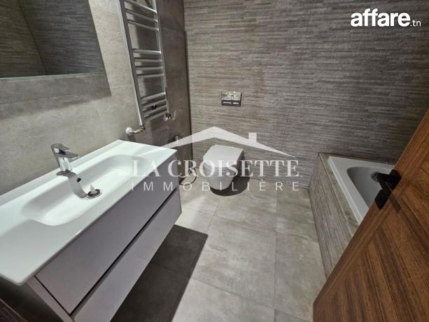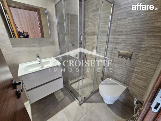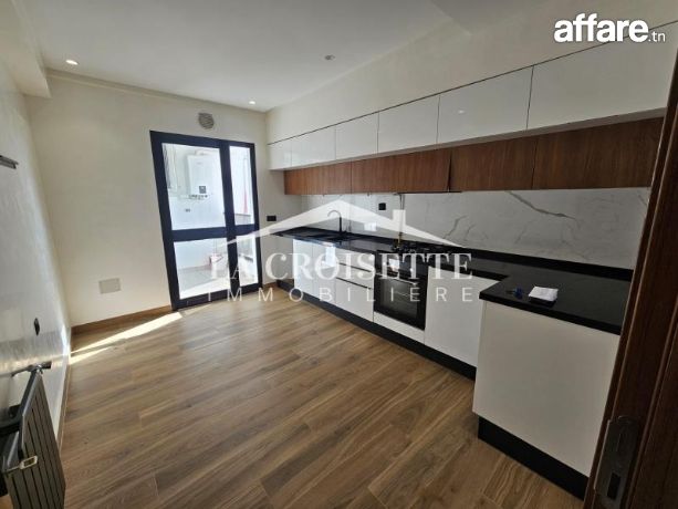 La Croisette Immobilière Tunisie vous propose à la location un appartement S+2 occupant le deuxième étage d’une résidence gardée aux Jardins de Carthage.