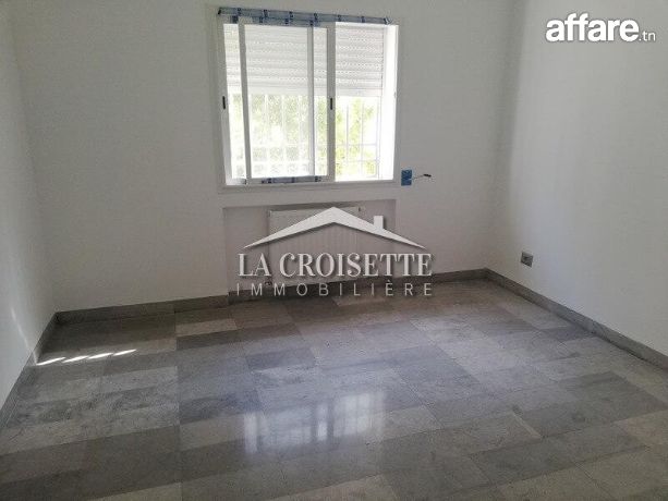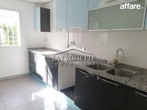 La Croisette Immobilière Tunisie vous propose à la location un appartement S+2 avec jardin occupant le au rez-de-chaussée d'une résidence gardée à La Soukra.