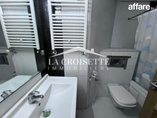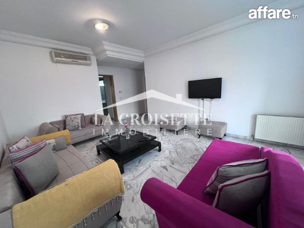 La Croisette Immobilière Tunisie vous propose à la location un appartement S+2 meublé occupant le première étage d’une résidence gardée à La Marsa.