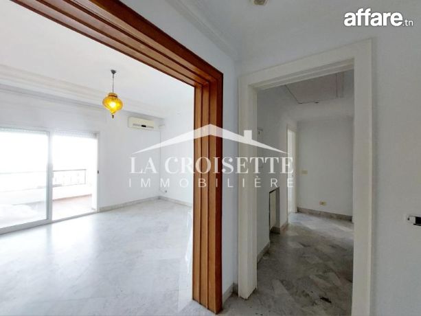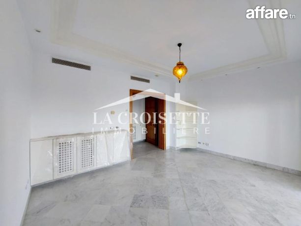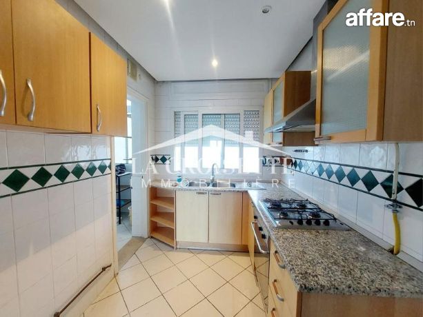 La croisette immobilière Tunisie vous propose à la location un appartement S+2 occupant le deuxième étage d'une résidence gardée située dans un quartier résidentiel proche de la plage et de toutes commodités à La Marsa.