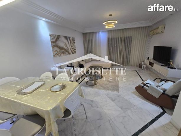 La Croisette Immobilière Tunisie vous propose à la location un appartement S+3 occupant le troisième étage d’une résidence gardée à Ain Zaghouan Sud.