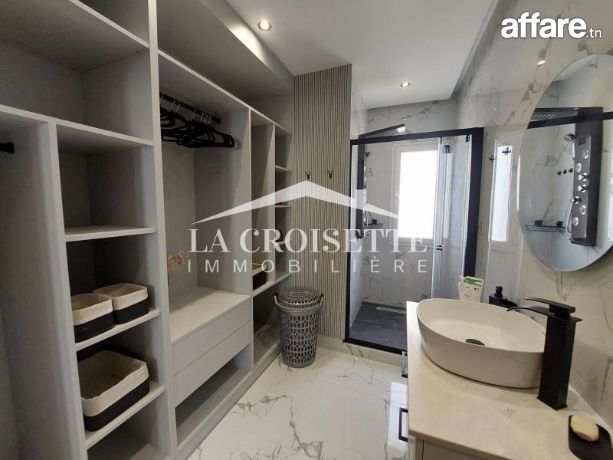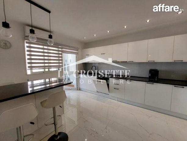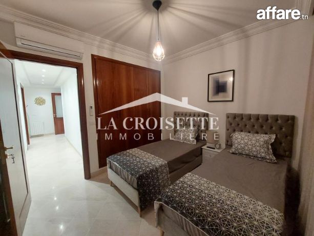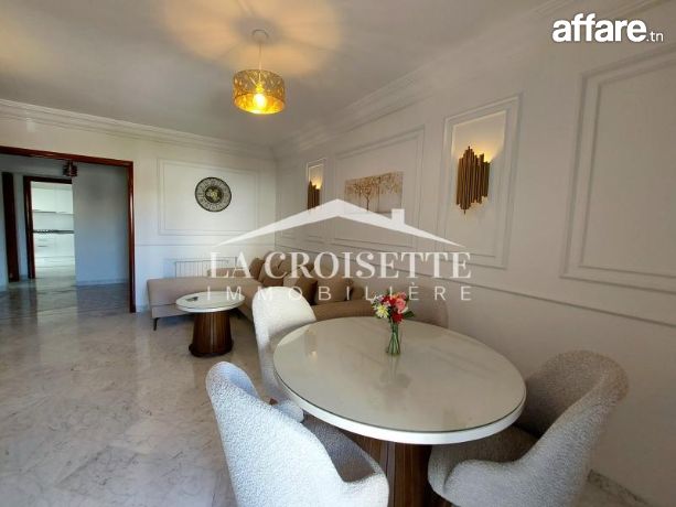la croisette immobilière Tunisie vous propose à la location un appartement S+3 meublé occupant le premier étage d'une résidence gardée située à La Marsa.