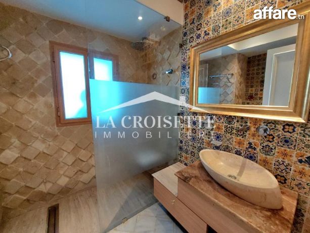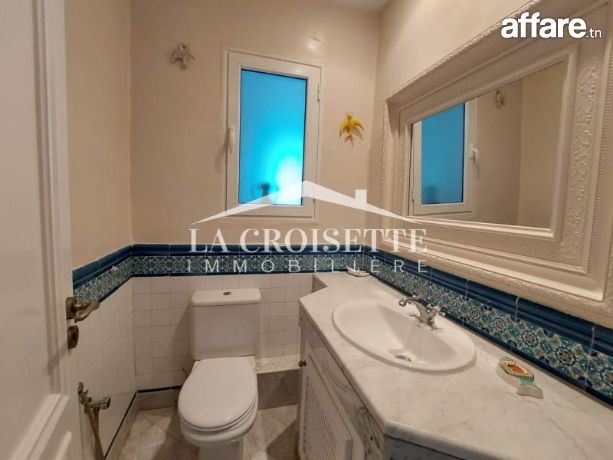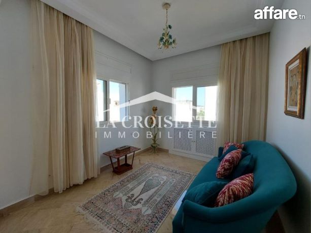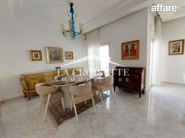 la croisette immobilière Tunisie vous propose à la location un appartement S+3 richement meublé occupant le premier étage d'une résidence gardée et proche de la mer située à La Marsa.