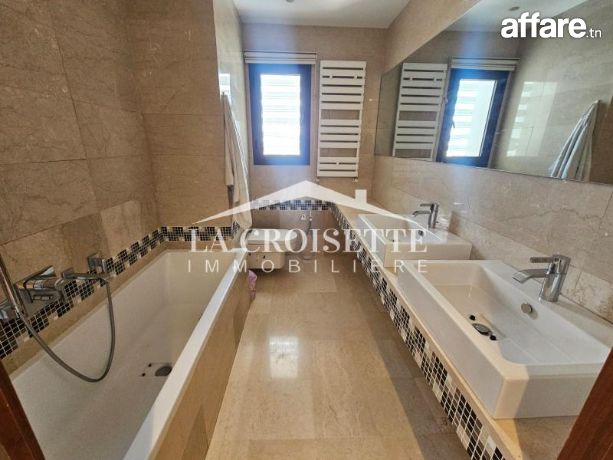 La Croisette Immobilière Tunisie vous propose à la location un appartement S+3 meublé situé dans une résidence gardée aux Berges du Lac 2.