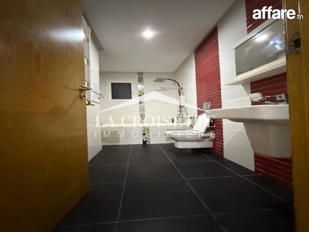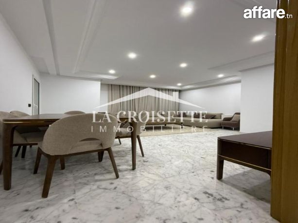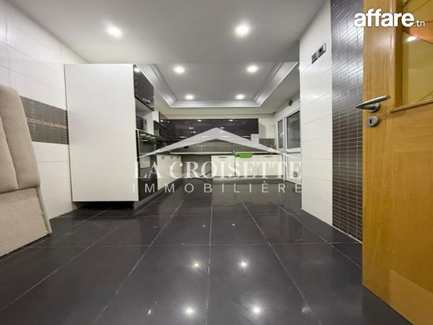 La croisette immobilière Tunisie vous propose à la location un appartement S+3 meublé occupant le rez-de-chaussée d'une résidence gardée située aux Jardins de Carthage.