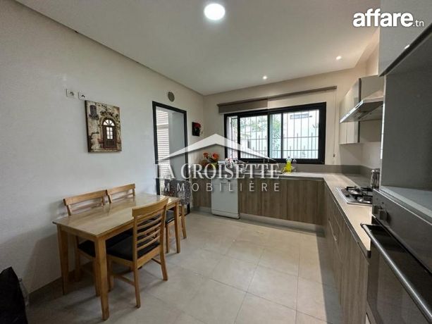 La Croisette Immobilière Tunisie vous propose à la location un appartement S+3 avec jardin occupant le rez-de-chaussée d'une résidence gardée à Ain Zaghouan Nord.