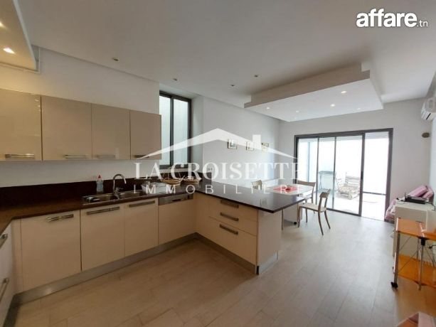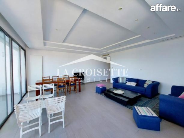 la croisette immobilière Tunisie vous propose à la location un appartement S+3 richement meublé occupant le premier étage d'une résidence privée située dans un quartier prisé à La Marsa.
