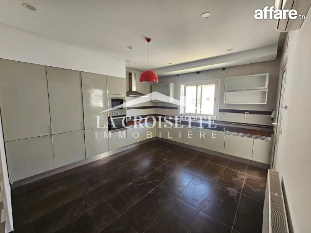 La Croisette Immobilière Tunisie vous propose à la location un appartement S+4 occupant le troisième étage d’une résidence gardée aux Jardins de Carthage.