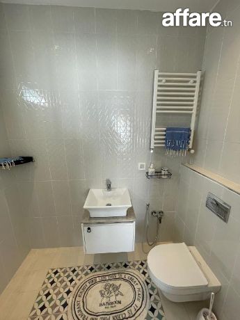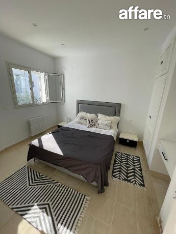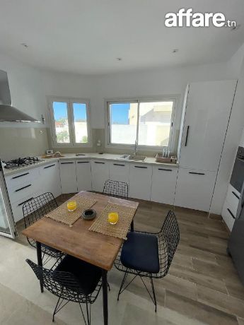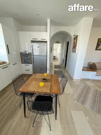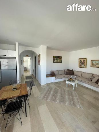 À louer pour de courtes durées, un charmant appartement S+2 situé au 2ᵉ étage dans la zone prisée de Miramar, à proximité de toutes les commodités et de la plage.