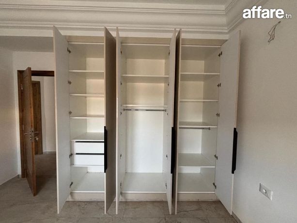 L’agence #MON_RÉSEAU met à la location un appartement S+2 jamais habité au 3 éme étage sans ascenseur dans une residence privée sécurisée et gardée , situé à proximité de toutes commodités.
