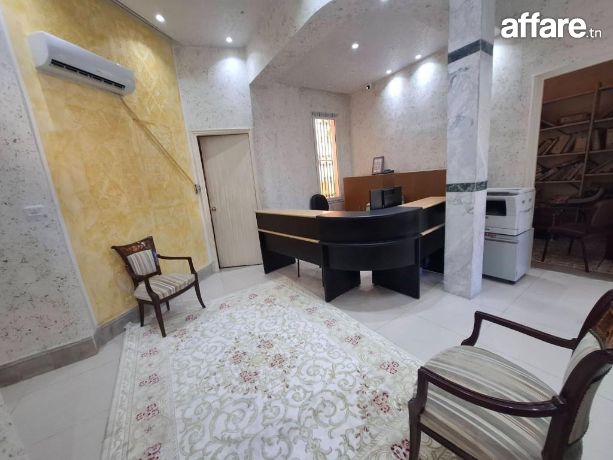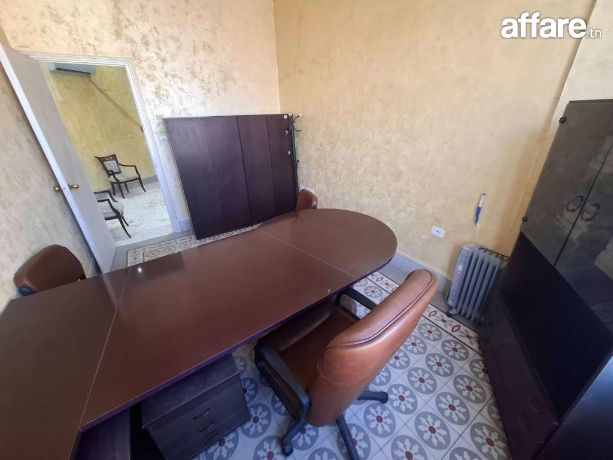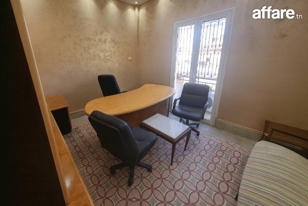À louer, un bureau entièrement meublé situé au 2ᵉ étage d’un immeuble professionnel sur la Rue de Palestine, au centre-ville de Tunis.