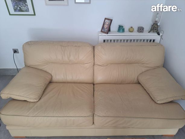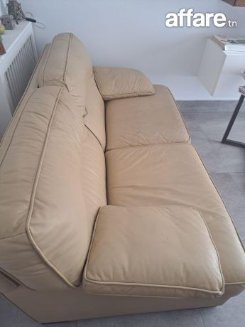 Modèle canapé cuir beige claire 3 places Ligne roset circa. Usure légère du cuir sur l’assise gauche et aux pieds.
