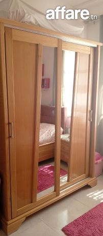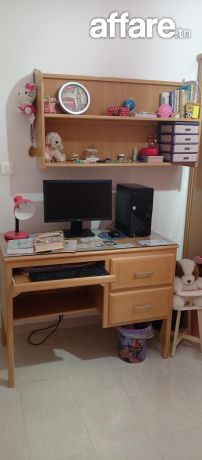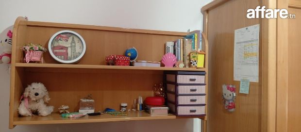 Lit 1m20 , table de nuit, dressing,, bureau et 2 éléments de rangement . Bois blenz, couleur naturelle, tête de lit rose poudre. Prix non négociable
