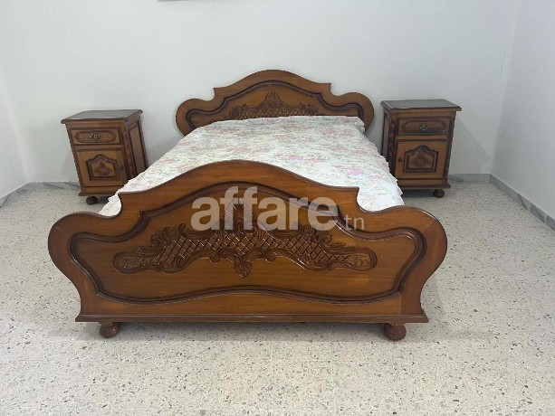 A vendre chambre à coucher composé d'un lit 2 places de 1.60m/2m avec 2 tables de nuit plus coiffeuse avec miroir+ 5 tiroirs