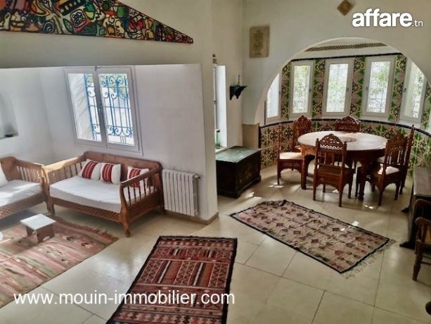 A louer à l'année, une maison au style arabe d'une belle architecture, située à Hammamet à 5mn du centre culturel et à 10mn de la plage. Elle est composée d'un spacieux salon - salle à manger avec un coin cheminé, quatre chambres à coucher, une cuisine ouverte sur une terrasse, une salle de bain et une salle d'eau.