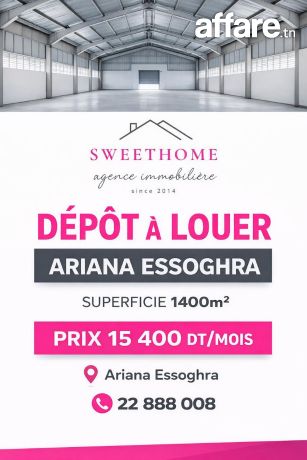 Sweet Home vous propose à la location un dépot à Ariana Essoghra d'une superficie 1400m2 .