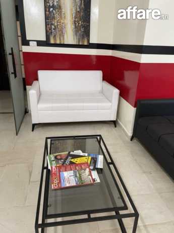 deux fauteuils en cuir noir et blanc avec table basse neuf